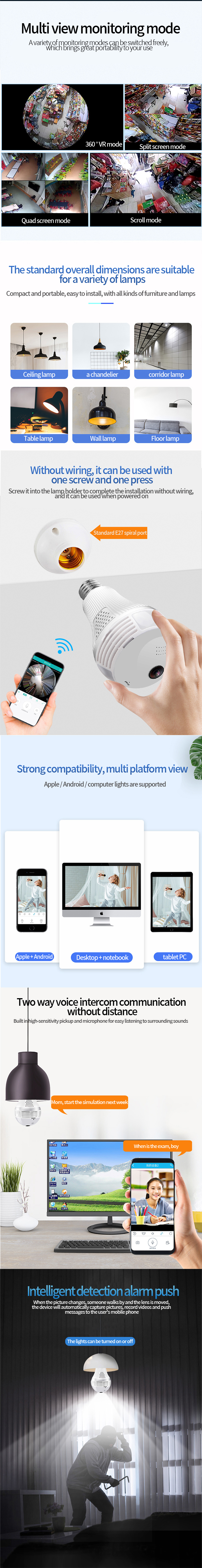 360° Panoramic Hidden Wifi IP Light Bulb HD 1080P Home Security Cam ICSEE APP