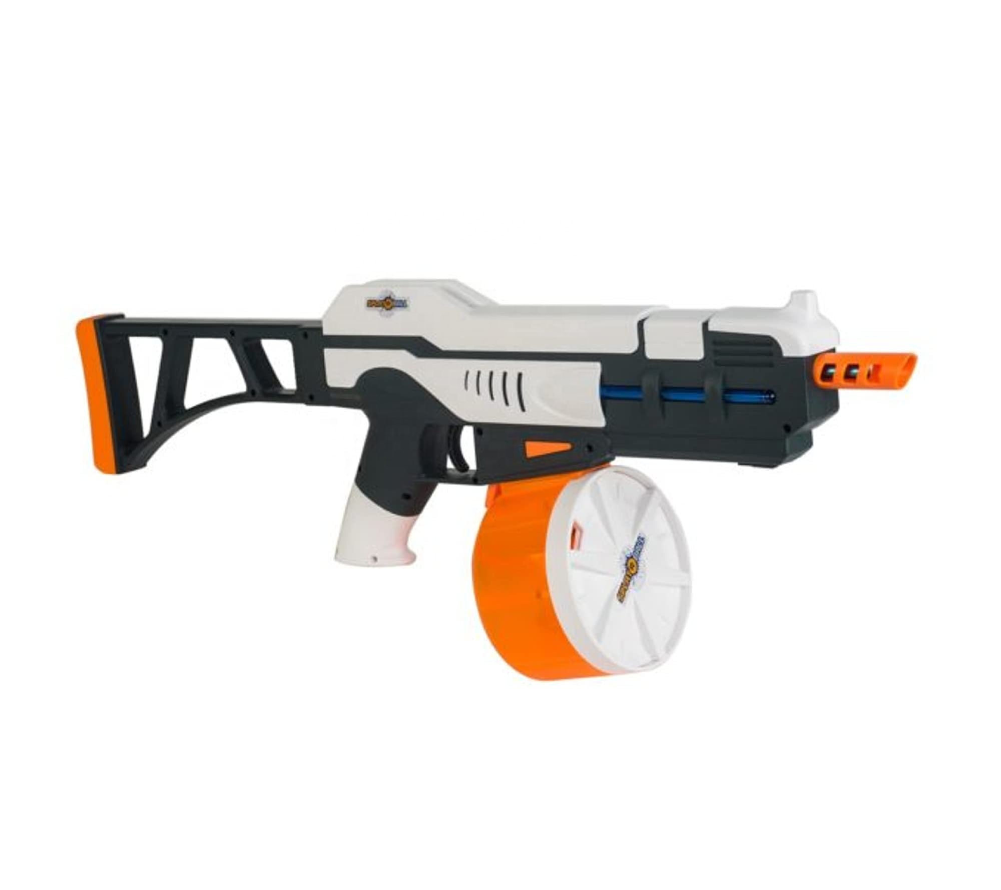 GELBLASTER G32S IS everything in your path with full auto water bead fire rate and a 1,200 round drum magazine! The GELBLASTER SRB1200S Full Auto Water Bead Blaster shoots up to 210 feet per second (fps) ammo. It has a drum magazine with 1,200 round capacity. Shoots Certified 7.5mm GELBLASTER water bead ammo at fire rate. This kit contains one Blaster, 1,200 round drum magazine, detachable stock, rounds of water beads, rechargeable 7.4V 1800mAh battery with charging cable (up to 5,000 shots per battery charge), SPLATRBALL collapsible funnel for magazine quick loading, safety glasses and one water activated target. Video: https://www.youtube.com/watch?v=cmpgH9qwY_0 For Support and Customer Service please visit https://splatrball.com/support/